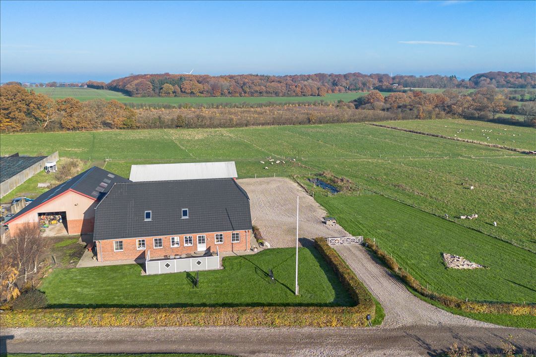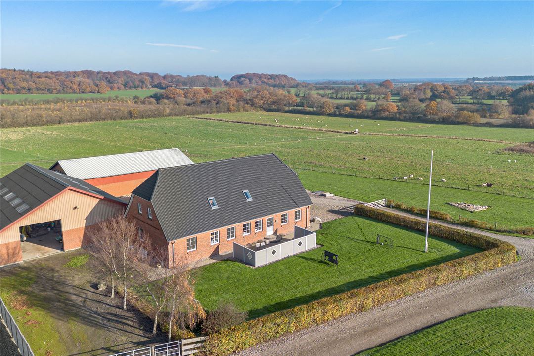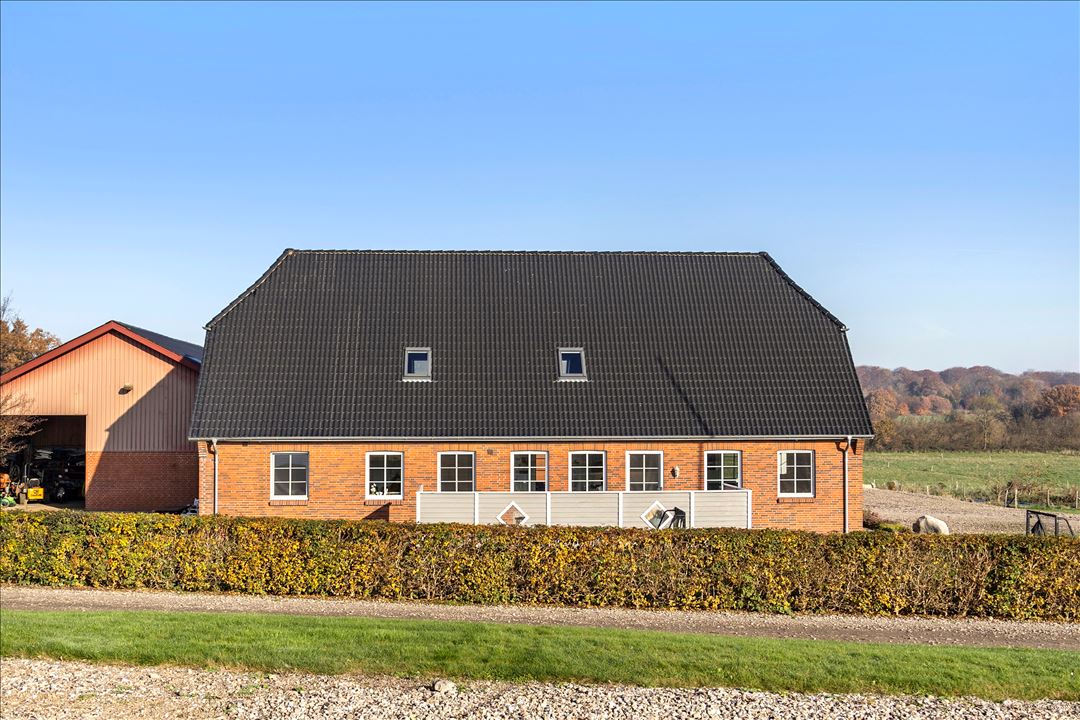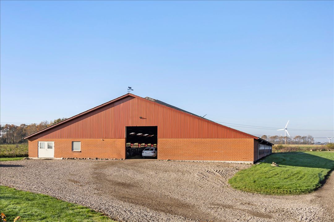 This modern dairy farm is located in a strong agricultural area between Hellevad and Rødekro, in the municipality of Aabenraa. The location offers peace and space, surrounded by open fields, but with a short distance to amenities such as schools, shops, and main roads.