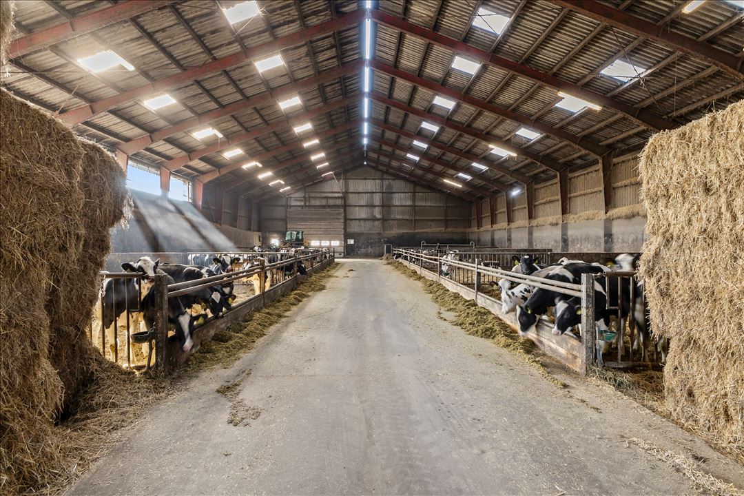 The farm buildings are modern and functional, ideal for dairy farming: