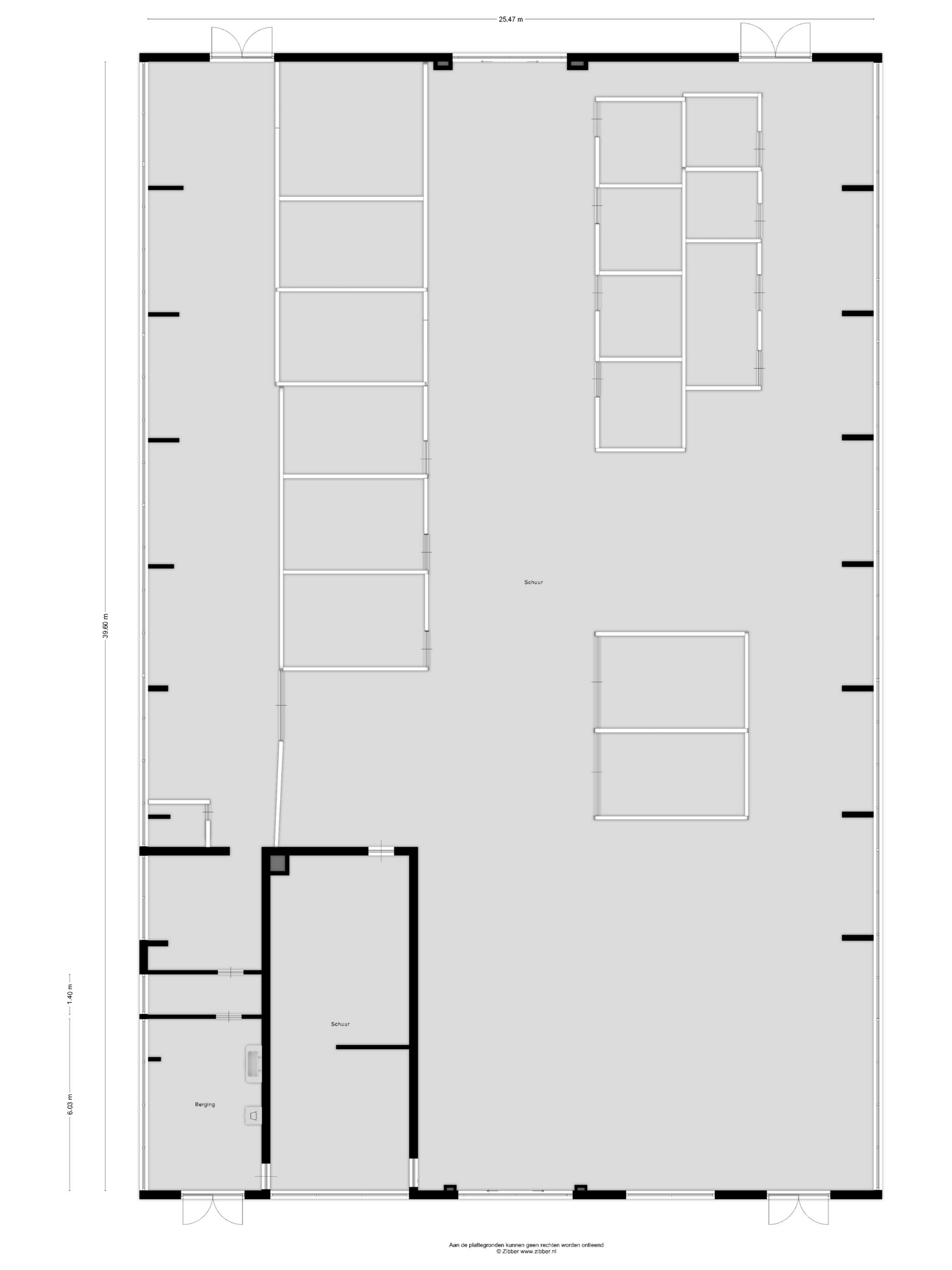 De afmetingen zijn ca. 40 x 26 meter en de mestkelder heeft een inhoud van ca. 800 m³.