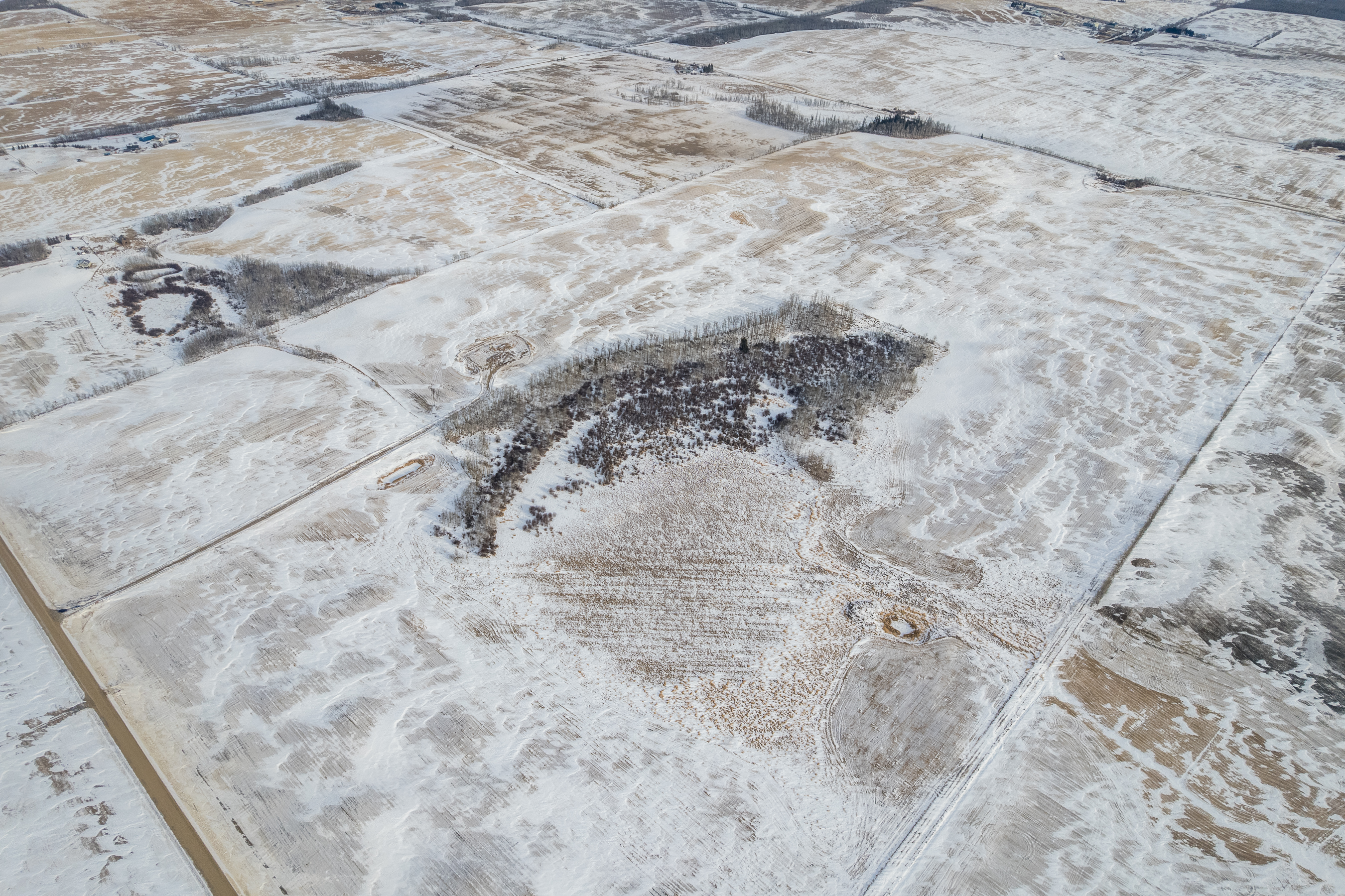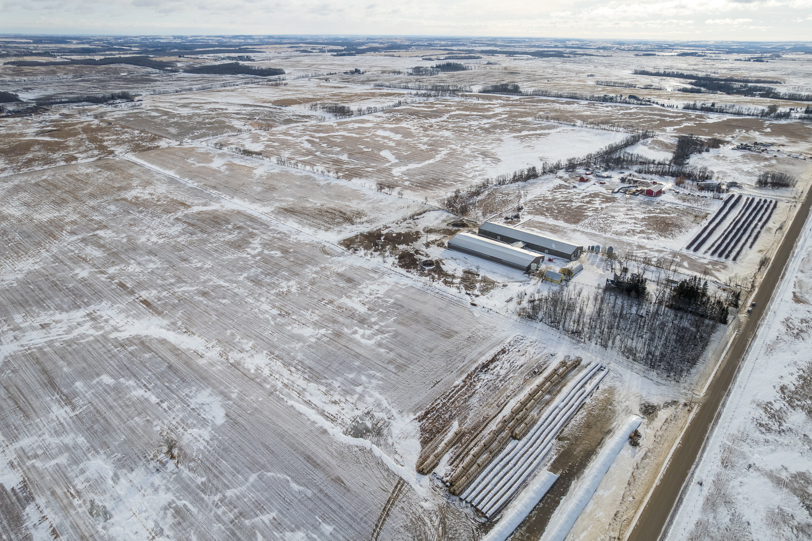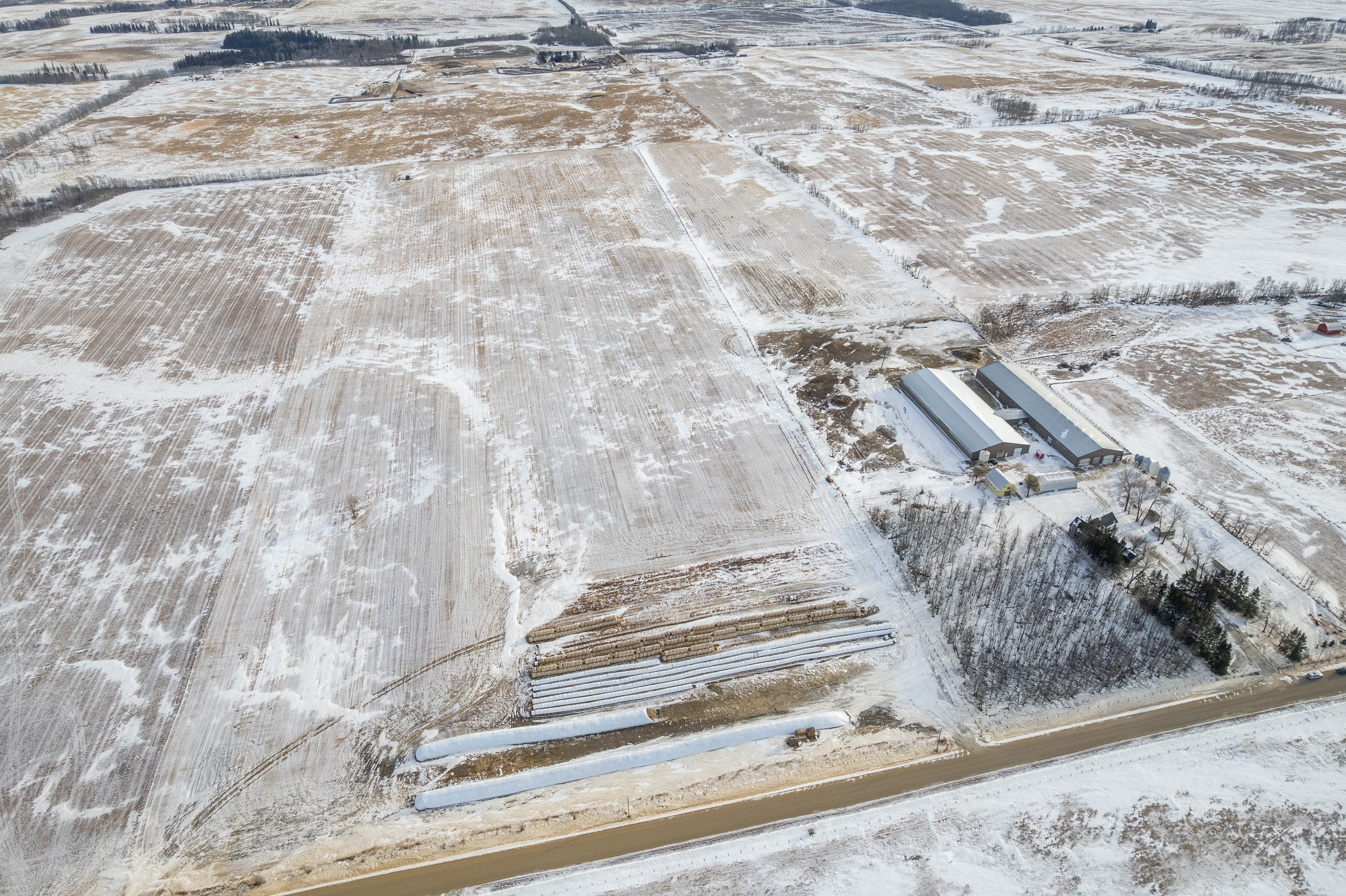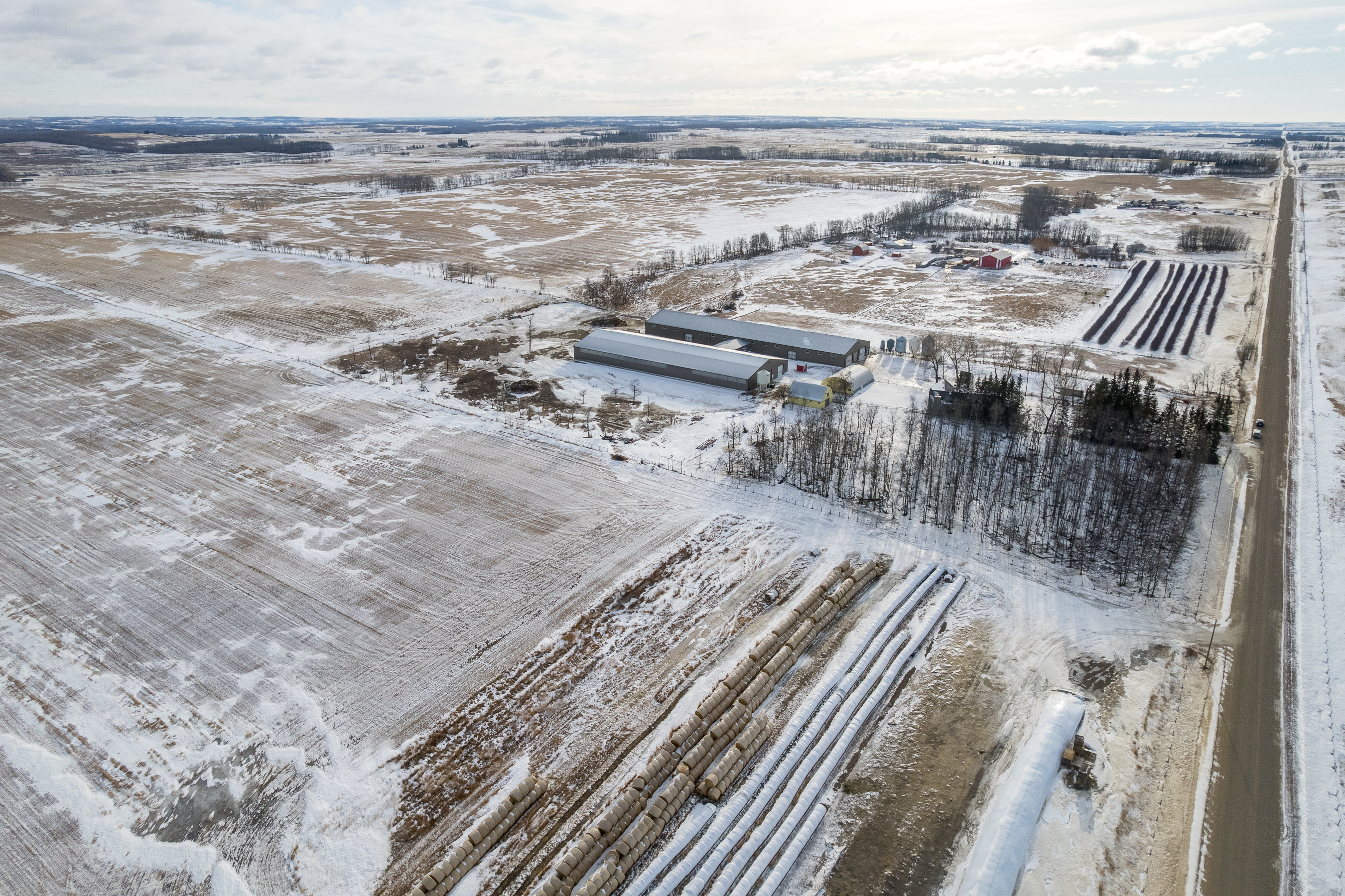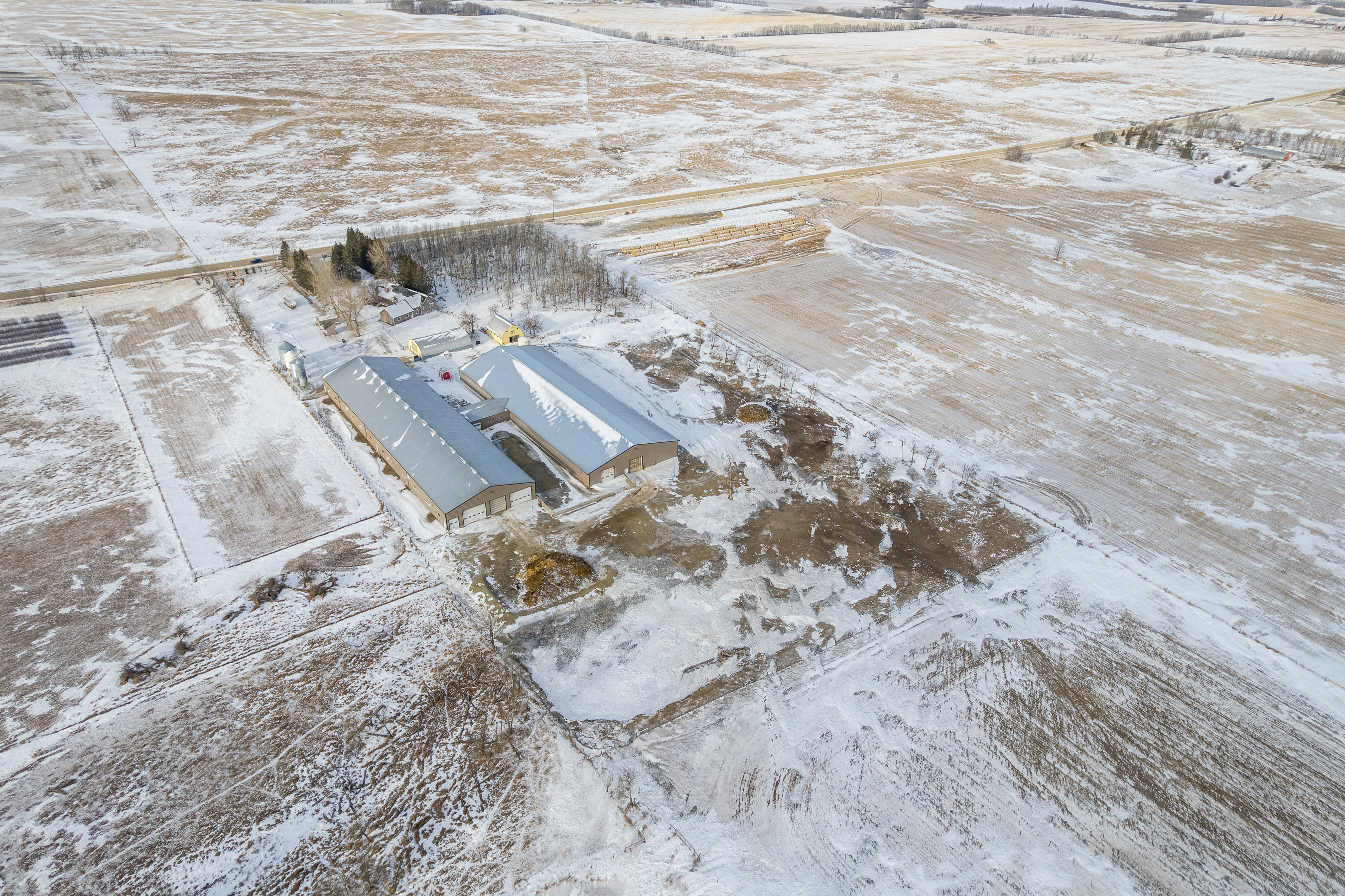 Het erfperceel bestaat uit 80 acres en is ideaal gelegen op slechts 15 minuten ten oosten van Ponoka. Hier bevinden zich de woning, de belangrijkste veefaciliteiten, de stallen en het erf. De overige 320 acres liggen op ongeveer één mijl ten zuiden van het thuisbedrijf en bieden aanvullende, productieve grond ter ondersteuning van de bedrijfsvoering.