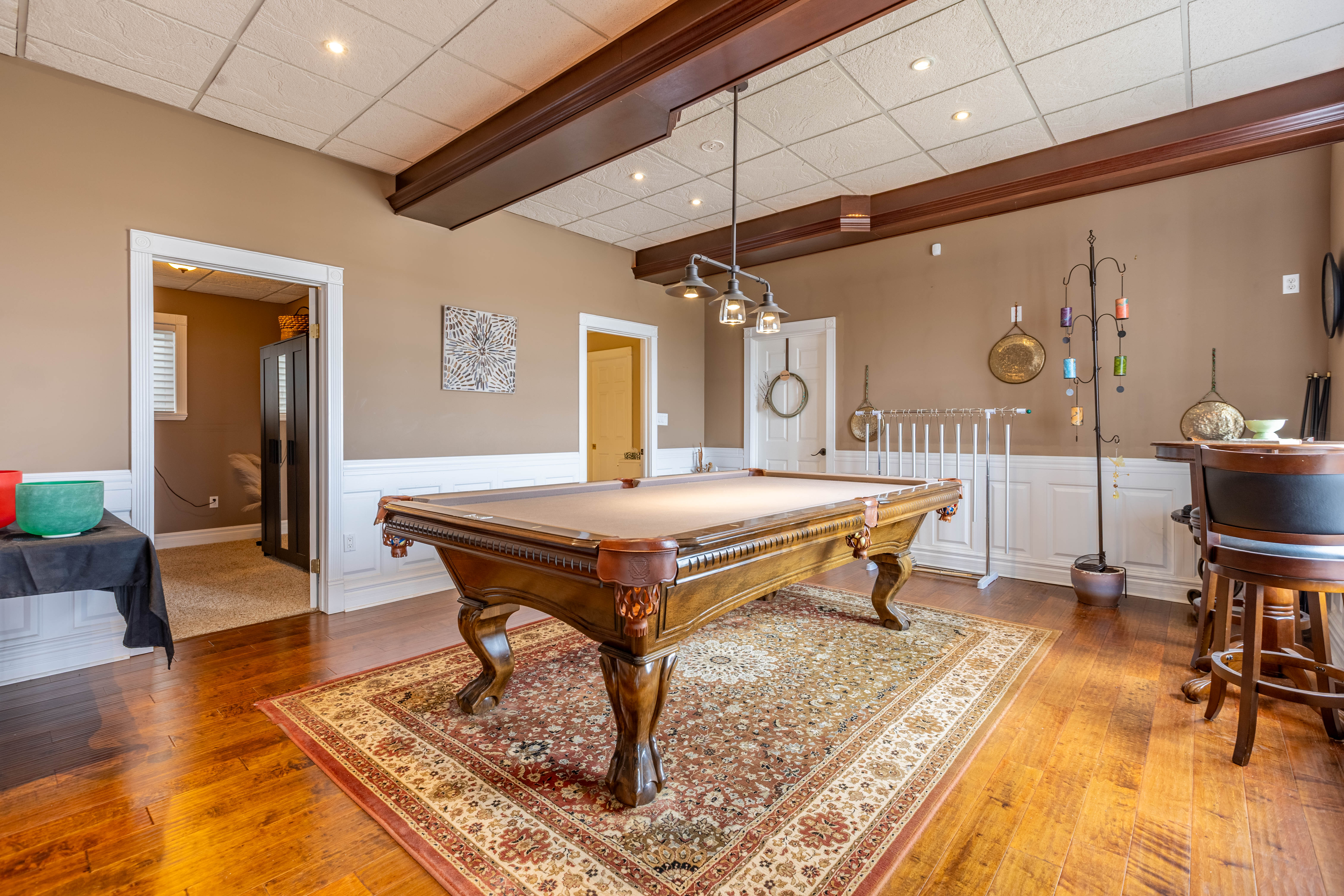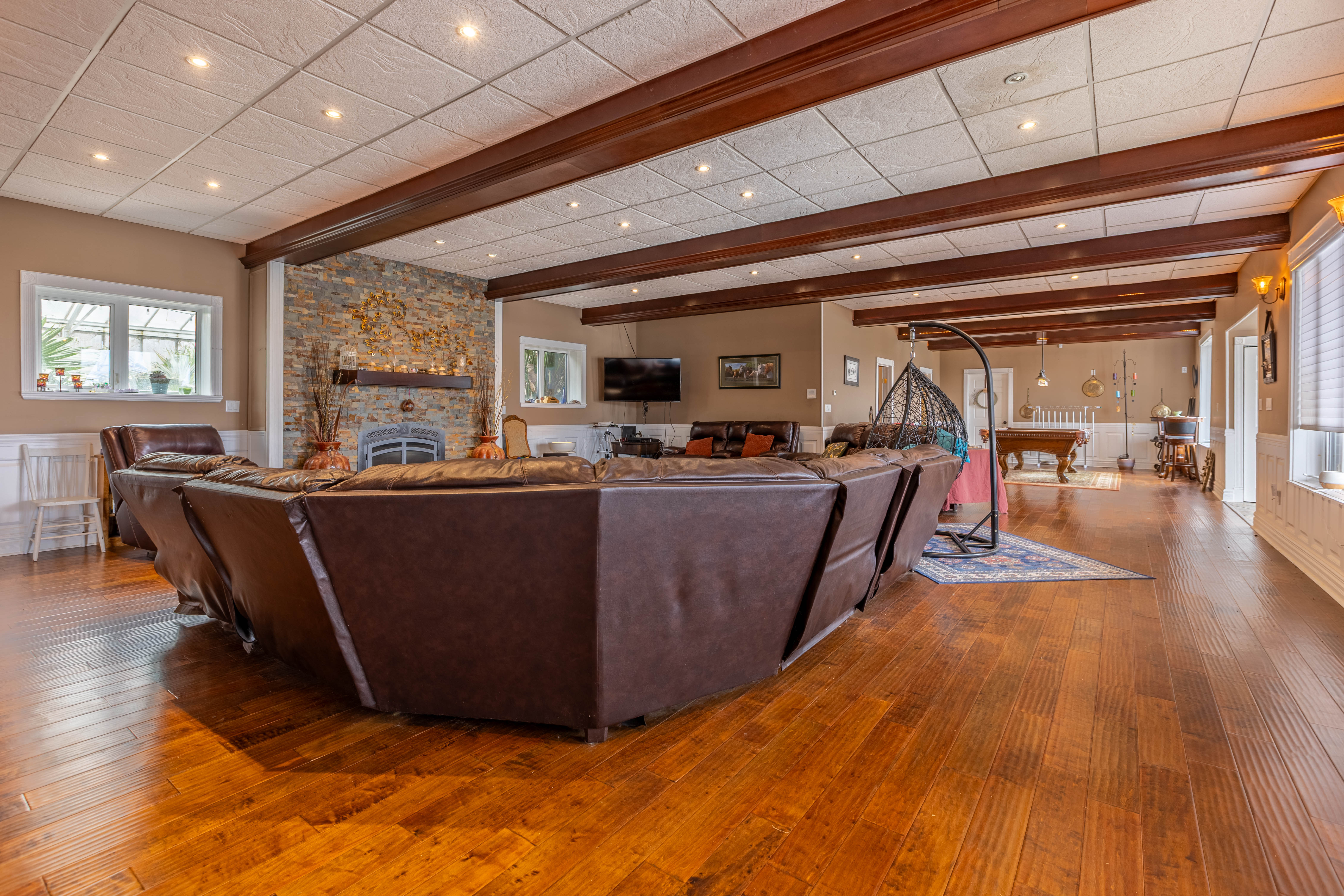 Op de benedenverdieping vindt u twee extra slaapkamers, een grote recreatieruimte (meer dan 1.300 sq.ft.) met een natte bar, een grote solarium met jacuzzi, een drietalige garage van 992 sq.ft., twee gaskachels en twee wasruimtes.