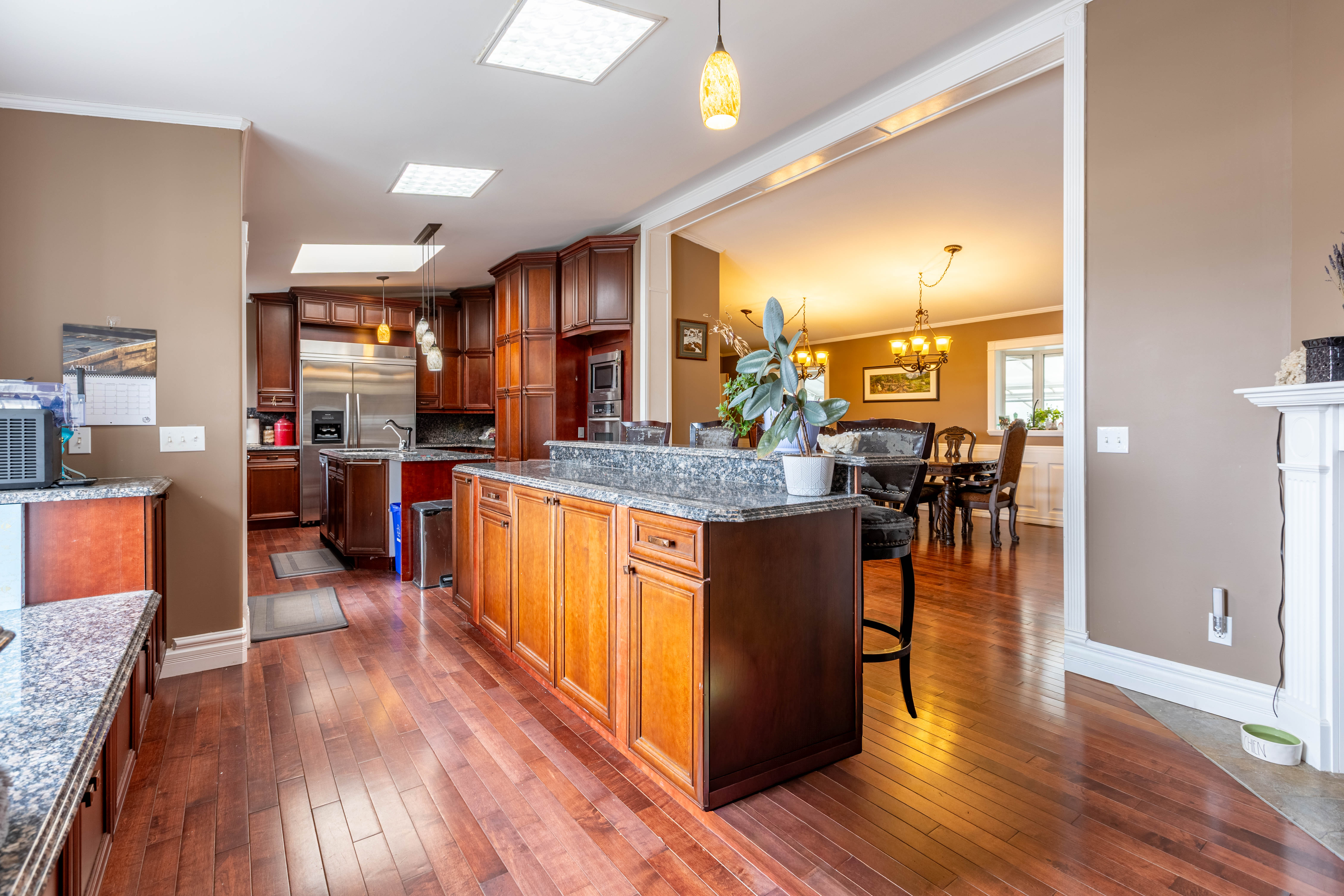 De hoofdwoning heeft een ruime indeling over twee volledig bovengrondse verdiepingen, ontworpen voor zowel dagelijks wonen als grotere bijeenkomsten. De keuken vormt het hart van het huis, afgewerkt met hickory kasten, granieten aanrechtbladen en een groot eiland, dat natuurlijk overloopt in een royale eetkamer en open woonruimte.